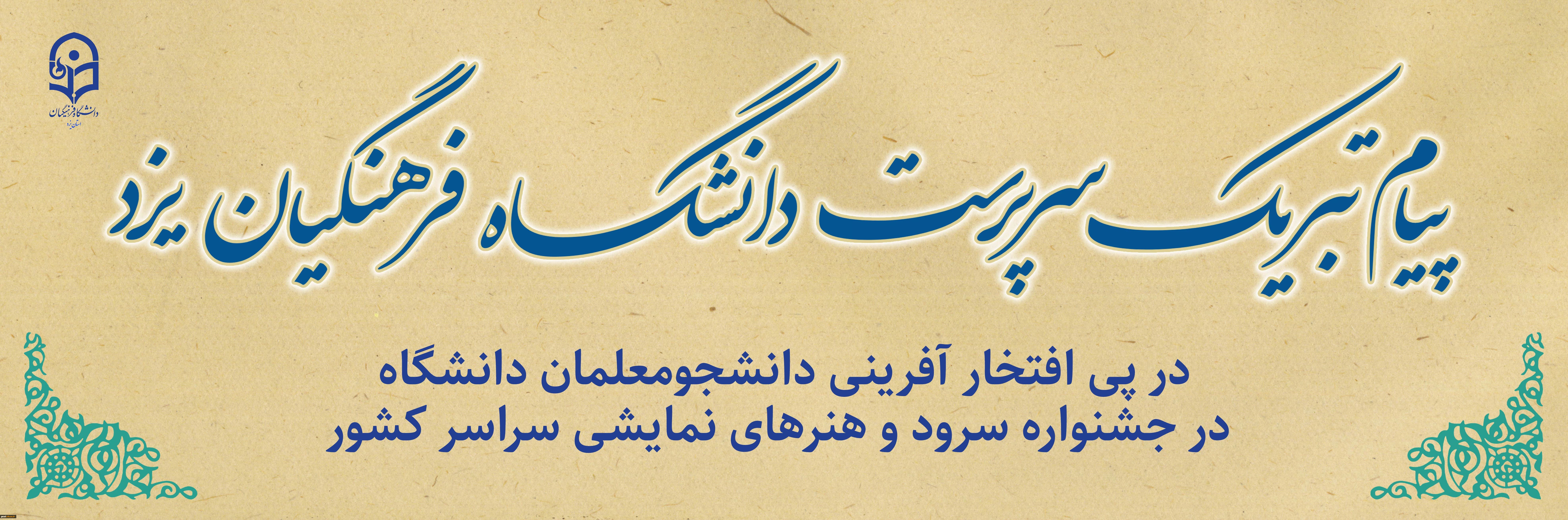 پیام تبریک سرپرست دانشگاه فرهنگیان یزد در پی افتخار آفرینی دانشجومعلمان دانشگاه در جشنواره سرود و هنرهای نمایشی سراسر کشور 2