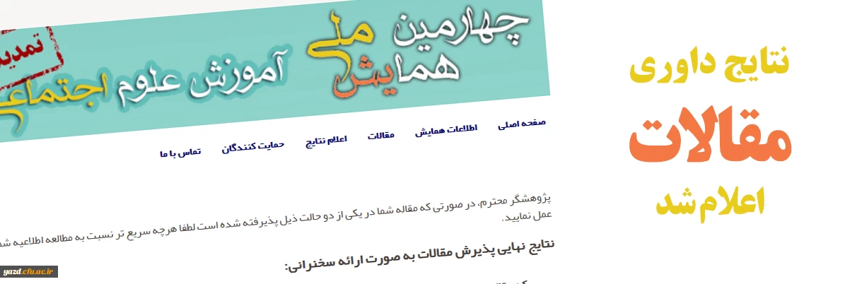 امتیاز دهید : اعلام نتایج نهایی داوری مقالات ارسالی به چهارمین همایش ملی آموزش علوم اجتماعی 2 پنجشنبه 3 اسفند 1402 ساعت 17:23