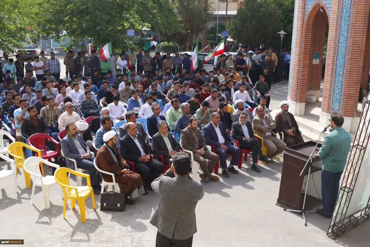 تجمع باشکوه اساتید، دانشجومعلمان و کارمندان دانشگاه فرهنگیان استان یزد در حمایت از اقدام موشکی سپاه پاسداران و تحقق عملیات وعده صادق برگزار شد. 4