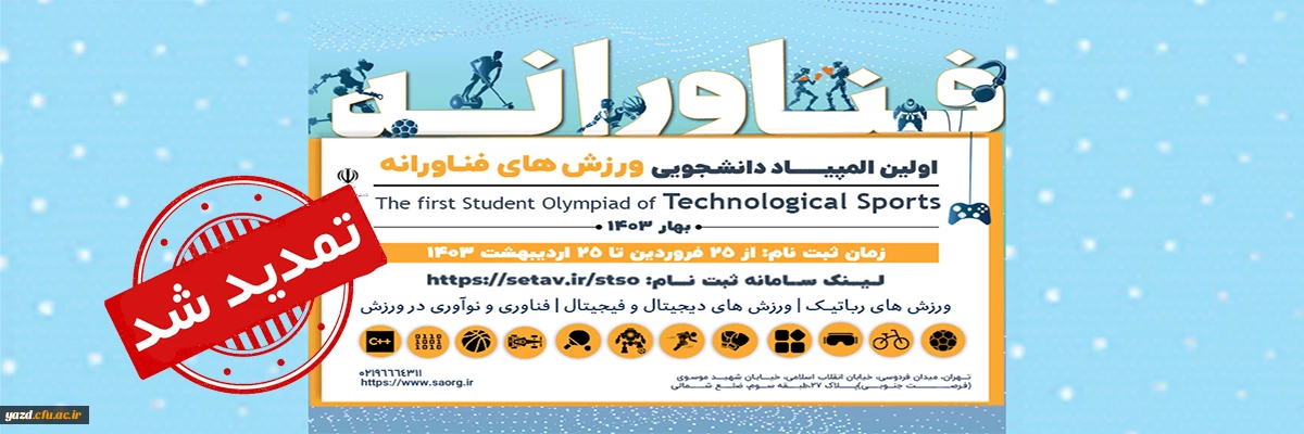امتیاز دهید : مهلت ثبت نام در المپیاد ورزش های فناورانه دانشجویی تا 5 خرداد ماه 1403 تمدید شد. 2 یکشنبه 30 اردیبهشت 1403 ساعت 14:05