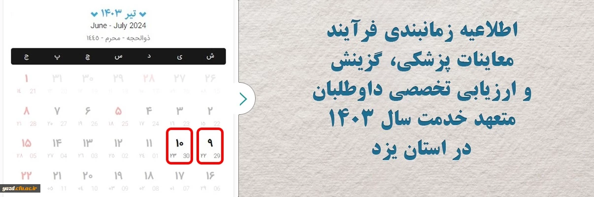 اطلاعیه برنامه زمانی پذیرش اولیه، معاینات پزشکی، مصاحبه عمومی و ارزیابی تکمیلی داوطلبان متعهد خدمت سال ۱۴۰۳ 2