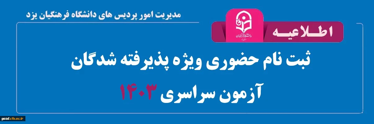 امتیاز دهید : اطلاعیه و فرم های ثبت نام حضوری ویژه پذیرفته شدگان آزمون سراسری 1403 2 دوشنبه 2 مهر 1403 ساعت 14:57