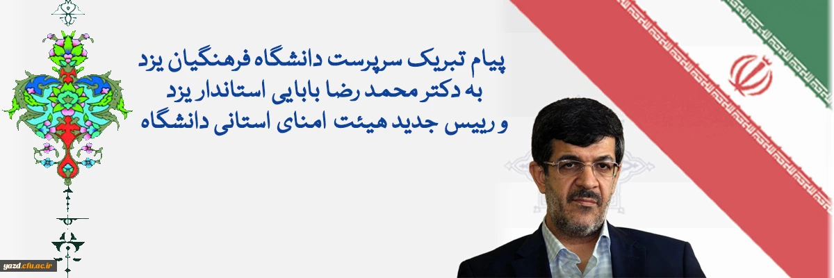 پیام تبریک سرپرست دانشگاه فرهنگیان یزد به دکتر محمد رضا بابایی استاندار یزد و رییس جدید هیئت امنای استانی دانشگاه 2