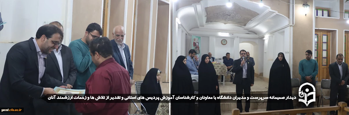 دیدار صمیمانه سرپرست و مدیران دانشگاه با معاونان و کارشناسان آموزش پردیس های استانی و تقدیر از تلاش ها و زحمات ارزشمند آنان برگزار شد. 13