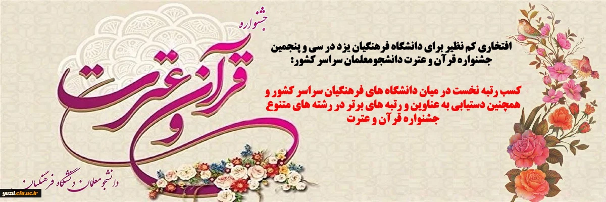 کسب رتبه نخست در میان دانشگاه های فرهنگیان سراسر کشور و همچنین دستیابی به عناوین و رتبه های برتر در رشته های متنوع جشنواره قرآن و عترت 2