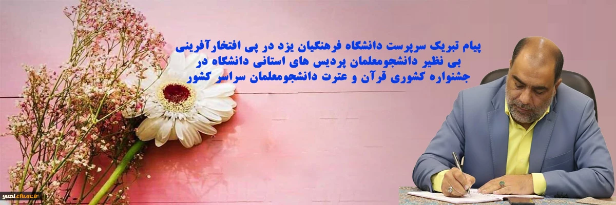 پیام تبریک سرپرست دانشگاه فرهنگیان یزد در پی افتخار آفرینی بی نظیر دانشجومعلمان پردیس های استانی دانشگاه در جشنواره کشوری قرآن و عترت دانشجومعلمان سراسر کشور 2